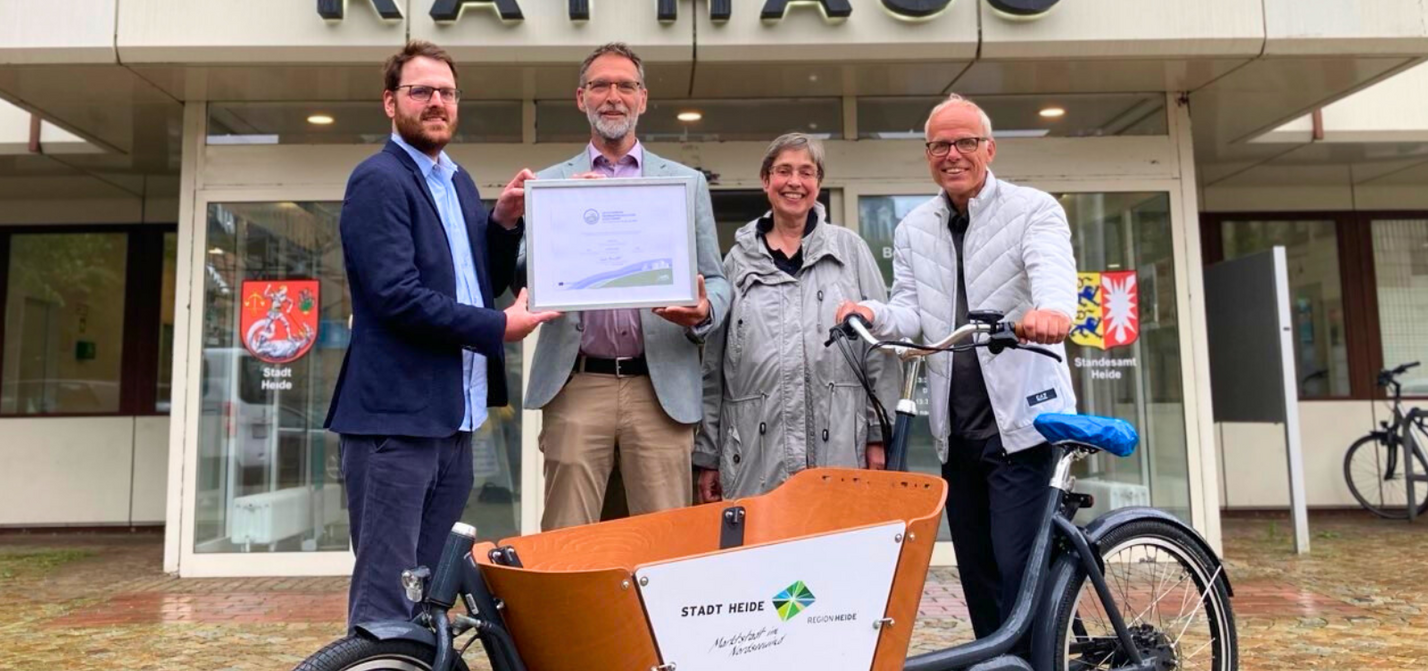 Die Stadt Heide ist jetzt offiziell als fahrradfreundlicher Arbeitgeber in Schleswig-Holstein ausgezeichnet. Die Verwaltung erhielt kürzlich das begehrte Zertifikat in Silber und ist damit der zehnte von insgesamt elf “Fahrradfreundlichen Arbeitgebern” in SH.